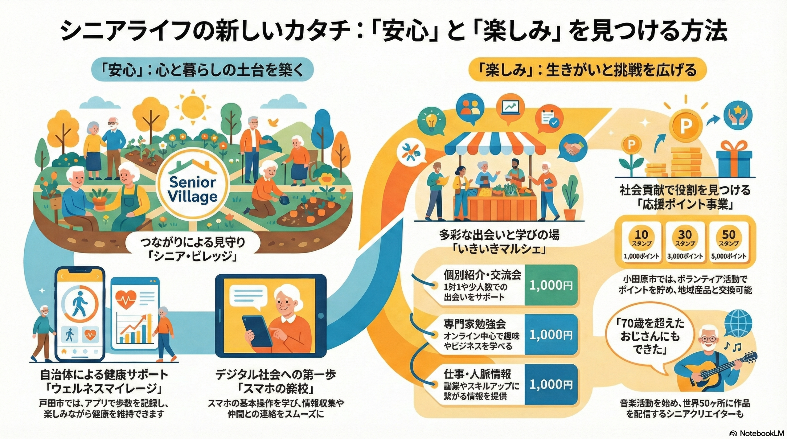 「安心」という土台の上に、「楽しみ」を追求する。この循環的なエコシステムこそが、「人生100年時代」が単なる長寿ではなく、活力と目的に満ちた鮮やかな時間であることを証明しています。